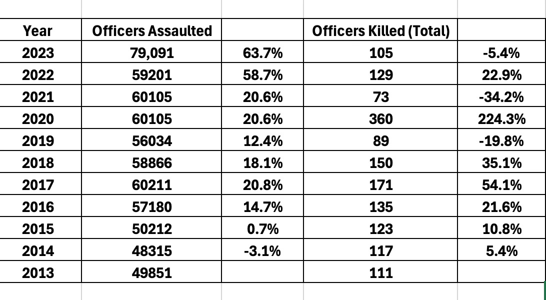 Given the nat'l exodus of police, I would expect the increase in assaults and LODDs to increase over the next 5-10 years; absent a serious effort to improve staffing & morale.